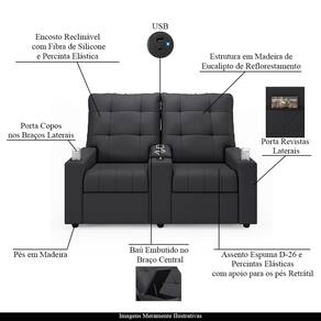 Diferenciais: Apoio de pés retrátil, bolso lateral para revistas e livros, Porta Copos Embutido nos Braços Laterais e Baú porta objetos