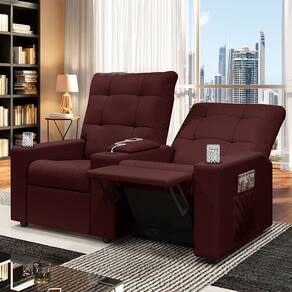Poltrona Reclinável Para Cinema Parma 2 Lugares Baú USB Veludo FH1 - D`Rossi - Vinho
