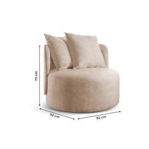 A poltrona Moon combina estilo contemporâneo com design inovador. Suas linhas suaves e estética minimalista trazem sofisticação a qualquer ambiente, enquanto sua forma circular convida ao conforto e acolhimento. Acompanhada de duas almofadas decorativas, adiciona um toque extra de estilo. Sua estrutura em eucalipto tratado garante durabilidade e resistência, enquanto a espuma de alta qualidade, classificada como D28, oferece conforto excepcional. Acompanha Almofadas extras: 02 Acompanha Puff: Não Almofada do assento: Fixa Almofada do encosto: Removível Altura do assento até o chão: 42 cm Altura do Encosto: 31 cm Ambiente Principal: Sala de Estar Cor: Bege Cor do Produto: Bege Design Assinado: Não Enchimento do Assento: Espuma D-28 Encosto para a Cabeça: Não Estampado: Não Extensível: Não Firmeza do Assento: Médio Itens Inclusos: 1 poltrona + 2 almofadas Linha ou Coleção: Moon Modelo de Poltrona: Fixo Necessita Montagem: Não Origem do Produto: Nacional Peso: 15 kg Possui Percintas Elásticas: Não Possui Pés: Não Recomendações de Uso, Manutenção e Limpeza: Utilizar aspirador de pó, escova com cerdas macias ou limpeza a seco. Não utilizar produtos químicos, abrasivos ou limpeza a vapor. Evitar exposição prolongada ao sol. Suporta Até (kg): 120 kg Tecido Predominante: Poliéster Tipo de Assento: Fixo Tipo de Encosto: Fixo Tipo de Espuma do Assento: Espuma Convencional Tipo de Poltrona: Decorativa Marca: Zurc Decor
