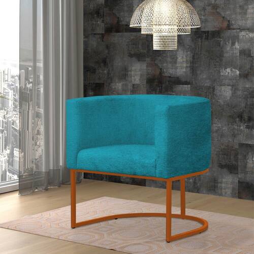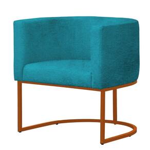 Poltrona Reforçada Decorativa Sala Gabriela Base Ferro Bronze Suede - Azul