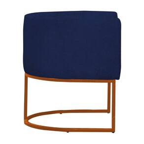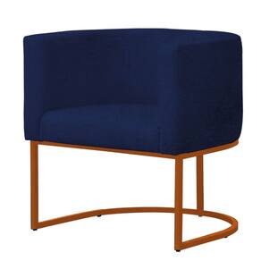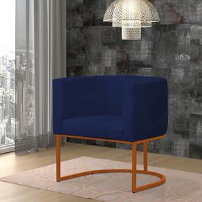 Poltrona Reforçada Decorativa Sala Gabriela Base Ferro Bronze Suede - Azul Marinho