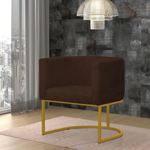 Poltrona Reforçada Decorativa Sala Gabriela Base Ferro Dourada Suede - Marrom