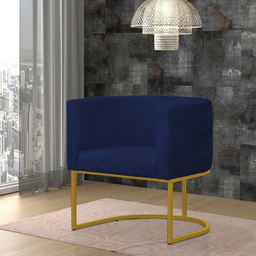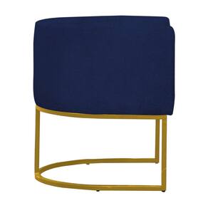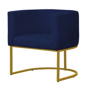 Poltrona Reforçada Decorativa Sala Gabriela Base Ferro Dourada Suede - Azul Marinho