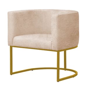 Poltrona Reforçada Decorativa Sala Gabriela Base Ferro Dourada Suede - Bege