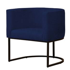 Poltrona Reforçada Decorativa Sala Gabriela Base Ferro Preta Suede - Azul Marinho