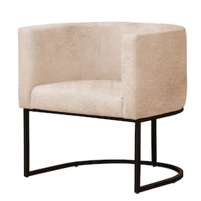 Poltrona Reforçada Decorativa Sala Gabriela Base Ferro Preta Suede - Bege