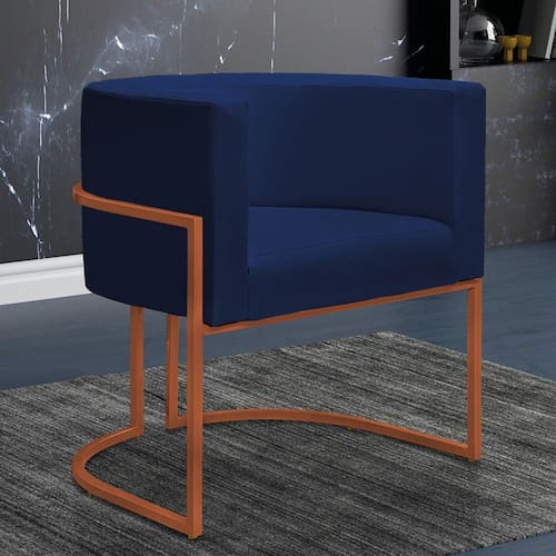 Poltrona Reforçada Decorativa Sala Nayara Base Ferro Bronze Suede - Azul Marinho