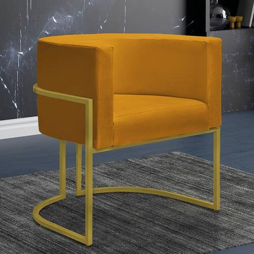 Poltrona Reforçada Decorativa Sala Nayara Base Ferro Dourado Suede - Mostarda