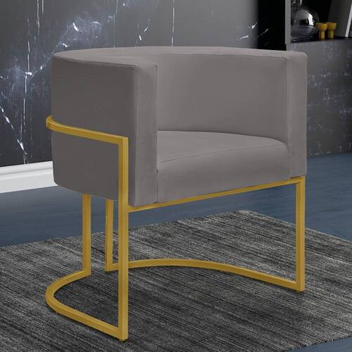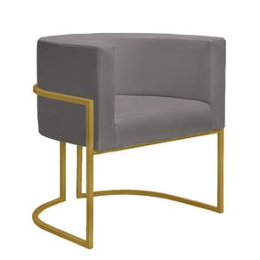 Poltrona Reforçada Decorativa Sala Nayara Base Ferro Dourado Suede - Cinza