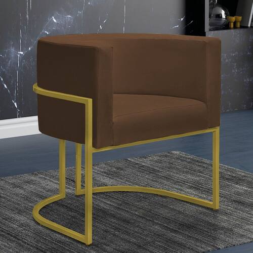 Poltrona Reforçada Decorativa Sala Nayara Base Ferro Dourado Suede - Marrom