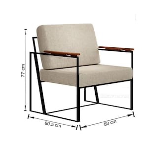 Medidas da poltrona: altura de 77cm, largura de 80cm, profundidade de 80,5cm.