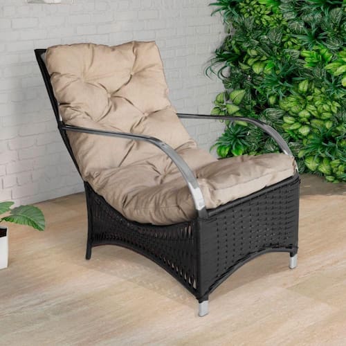 Poltrona Roma Para área Externa De Alumínio E Fibra Sintéti Preto/areia A Poltrona Roma e uma peca que encanta pela versatilidade, que combina design contemporaneo, durabilidade e conforto. A poltrona e produzida em Aluminio e tem acabamento em Fibra Sintetica de alta qualidade. A almofada que acompanha a poltrona tem um assento Impermeavel, revestido com espuma de alta densidade (D28), o que proporciona um conforto excepcional. ESPECIFICACOES TECNICAS: -Material da Estrutura: Aluminio Pintado; -Material do Enchimento do Assento: Espuma D28; -Material do Encosto: Fibra Sintetica; -Revestimento do Assento: Impermeavel; -Possui Regulagem de Altura? Nao; -E Giratoria? Nao; -Quantidade de Lugar: 1 Lugar; -Peso Total Suportado: 150kg; -: 3 Meses; -Necessita de Montagem: Nao; -Instrucoes de Cuidado: Limpar com pano umedecido e sabao neutro; -Dimensoes do Produto (LarguraXProfundidadeXAltura): 58x105x83cm; -Conteudo da Embalagem: 01 Poltrona; Marca: ACESSE MÓVEIS
