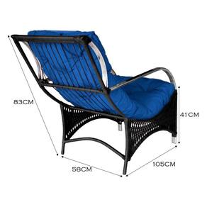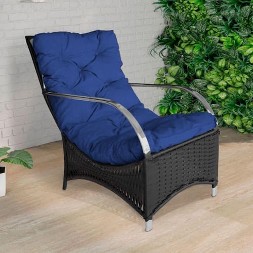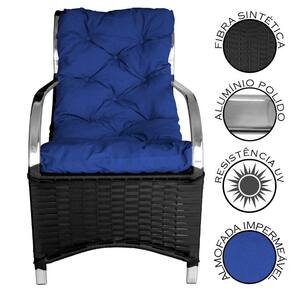 Poltrona Roma Para área Externa De Alumínio E Fibra Sintéti Preto/azul A Poltrona Roma e uma peca que encanta pela versatilidade, que combina design contemporaneo, durabilidade e conforto. A poltrona e produzida em Aluminio e tem acabamento em Fibra Sintetica de alta qualidade. A almofada que acompanha a poltrona tem um assento Impermeavel, revestido com espuma de alta densidade (D28), o que proporciona um conforto excepcional. ESPECIFICACOES TECNICAS: -Material da Estrutura: Aluminio Pintado; -Material do Enchimento do Assento: Espuma D28; -Material do Encosto: Fibra Sintetica; -Revestimento do Assento: Impermeavel; -Possui Regulagem de Altura? Nao; -E Giratoria? Nao; -Quantidade de Lugar: 1 Lugar; -Peso Total Suportado: 150kg; -: 3 Meses; -Necessita de Montagem: Nao; -Instrucoes de Cuidado: Limpar com pano umedecido e sabao neutro; -Dimensoes do Produto (LarguraXProfundidadeXAltura): 58x105x83cm; -Conteudo da Embalagem: 01 Poltrona; Marca: ACESSE MÓVEIS
