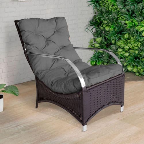 Poltrona Roma Para área Externa De Alumínio E Fibra Sintéti Tabaco/cinza A Poltrona Roma e uma peca que encanta pela versatilidade, que combina design contemporaneo, durabilidade e conforto. A poltrona e produzida em Aluminio e tem acabamento em Fibra Sintetica de alta qualidade. A almofada que acompanha a poltrona tem um assento Impermeavel, revestido com espuma de alta densidade (D28), o que proporciona um conforto excepcional. ESPECIFICACOES TECNICAS: -Material da Estrutura: Aluminio Pintado; -Material do Enchimento do Assento: Espuma D28; -Material do Encosto: Fibra Sintetica; -Revestimento do Assento: Impermeavel; -Possui Regulagem de Altura? Nao; -E Giratoria? Nao; -Quantidade de Lugar: 1 Lugar; -Peso Total Suportado: 150kg; -: 3 Meses; -Necessita de Montagem: Nao; -Instrucoes de Cuidado: Limpar com pano umedecido e sabao neutro; -Dimensoes do Produto (LarguraXProfundidadeXAltura): 58x105x83cm; -Conteudo da Embalagem: 01 Poltrona; Marca: ACESSE MÓVEIS