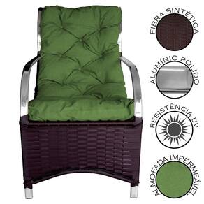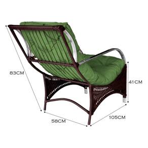 Poltrona Roma Para área Externa De Alumínio E Fibra Sintéti Tabaco/verde A Poltrona Roma e uma peca que encanta pela versatilidade, que combina design contemporaneo, durabilidade e conforto. A poltrona e produzida em Aluminio e tem acabamento em Fibra Sintetica de alta qualidade. A almofada que acompanha a poltrona tem um assento Impermeavel, revestido com espuma de alta densidade (D28), o que proporciona um conforto excepcional. ESPECIFICACOES TECNICAS: -Material da Estrutura: Aluminio Pintado; -Material do Enchimento do Assento: Espuma D28; -Material do Encosto: Fibra Sintetica; -Revestimento do Assento: Impermeavel; -Possui Regulagem de Altura? Nao; -E Giratoria? Nao; -Quantidade de Lugar: 1 Lugar; -Peso Total Suportado: 150kg; -: 3 Meses; -Necessita de Montagem: Nao; -Instrucoes de Cuidado: Limpar com pano umedecido e sabao neutro; -Dimensoes do Produto (LarguraXProfundidadeXAltura): 58x105x83cm; -Conteudo da Embalagem: 01 Poltrona; Marca: ACESSE MÓVEIS