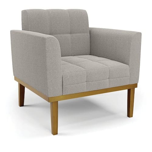 Poltrona Sala Base Madeira Fixa Castanho Elisa Bouclê D03 - D'rossi Cor Cinza