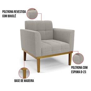 A Poltrona Elisa é uma poltrona que combina elegância, conforto e durabilidade. Ela tem um design retrô e sofisticado, com Base de Madeira Fixa Castanho e revestimento em tecido Bouclê. Ela é ideal para sala de estar, recepções, escritórios, cozinhas ou qualquer outro espaço que você queira decorar com estilo e bom gosto. Ela tem uma estrutura em madeira de reflorestamento eucalipto, que garante a resistência e a sustentabilidade do produto. Ela suporta até 120 kg de peso, podendo ser utilizada por pessoas de diferentes biotipos. Ela tem um acabamento reforçado e espuma de qualidade D23, que oferece maciez e aconchego. Ela contém detalhes de costura no encosto e assento, resultando em um acabamento impecável, conferindo muito mais valor e elegância ao produto. A Poltrona Elisa é um móvel de alta qualidade, beleza e funcionalidade. Ela é fácil de transportar, pois tem um peso leve e um tamanho compacto. A Poltrona Elisa é um produto que vai fazer a diferença na sua decoração e no seu bem-estar. Ela vai trazer charme, conforto e durabilidade para o seu ambiente. Aproveite essa oferta e leve para casa uma poltrona de qualidade por um preço incrível. Essa é a sua chance de ter uma poltrona maravilhosa por um preço imperdível. Corra e garanta a sua antes que acabe o estoque!
