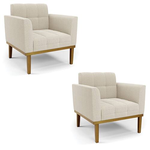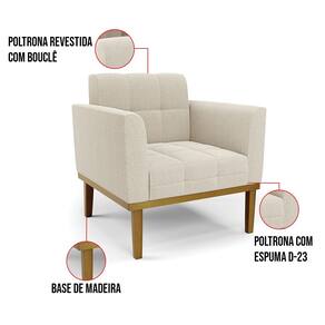 A Poltrona Elisa é uma poltrona que combina elegância, conforto e durabilidade. Ela tem um design retrô e sofisticado, com Base de Madeira Fixa Castanho e revestimento em tecido Bouclê Bege, que harmonizam com qualquer ambiente. Ela é ideal para sala de estar, recepções, escritórios, cozinhas ou qualquer outro espaço que você queira decorar com estilo e bom gosto. Ela tem uma estrutura em madeira de reflorestamento eucalipto, que garante a resistência e a sustentabilidade do produto. Ela suporta até 120 kg de peso, podendo ser utilizada por pessoas de diferentes biotipos. Ela tem um acabamento reforçado e espuma de qualidade D23, que oferece maciez e aconchego. Ela contém detalhes de costura no encosto e assento, resultando em um acabamento impecável, conferindo muito mais valor e elegância ao produto. A Poltrona Elisa é um móvel de alta qualidade, beleza e funcionalidade. Ela é fácil de transportar, pois tem um peso leve e um tamanho compacto. A Poltrona Elisa é um produto que vai fazer a diferença na sua decoração e no seu bem-estar. Ela vai trazer charme, conforto e durabilidade para o seu ambiente. Aproveite essa oferta e leve para casa uma poltrona de qualidade por um preço incrível. Essa é a sua chance de ter uma poltrona maravilhosa por um preço imperdível. Corra e garanta seu Kit 2 Poltronas antes que acabe o estoque!