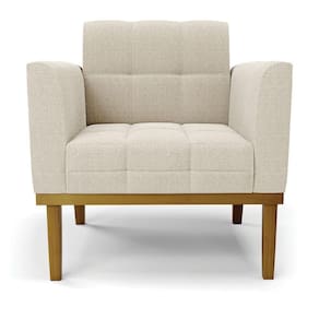 Poltrona Sala Base Madeira Fixa Castanho Kit 2 Elisa Bouclê D03 - D'rossi Cor Bege