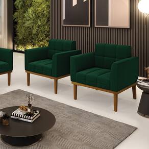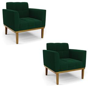 Poltrona Sala Base Madeira Fixa Castanho Kit 2 Elisa Bouclê D03 - D`Rossi - Verde