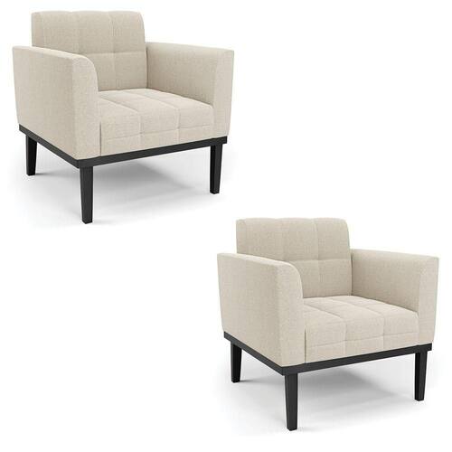 Poltrona Sala Base Madeira Fixa Pto Kit 2 Elisa Bouclê D03 - D`rossi Cor Bege