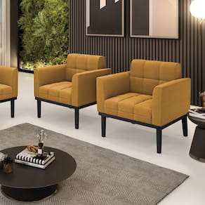 Poltrona Sala Base Madeira Fixa Pto Kit 2 Elisa Bouclê D03 - D`Rossi - Mostarda