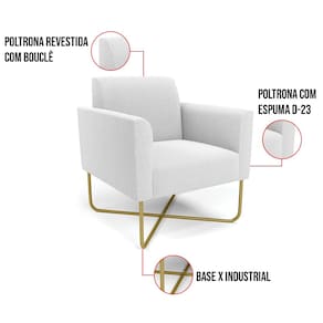 A Poltrona Marisa é a escolha perfeita para quem deseja unir conforto e comodidade em um estilo elegante. Com um design único, ela possui uma Base X Industrial Dourado que harmoniza com o seu belíssimo tom, criando uma combinação elegante de conforto e estilo. Ela é perfeita para quem busca móveis que não só sejam bonitos, mas que também proporcionem bem-estar. Ideal para compor salas de estar, recepções, bibliotecas, salas de leitura, espaços de design e até áreas comerciais, essa peça versátil é pensada para ambientes que excluam beleza e aconchego. Sua estrutura, em madeira de reflorestamento de eucalipto, oferece resistência e sustentabilidade, suportando até 120 kg, garantindo segurança para usuários de diferentes biotipos. O conforto é outro destaque, com estofado em espuma prorelax D-23, que proporciona suporte e maciez ideais. Revestida em Bouclê, um tecido maleável e sofisticado, a Poltrona Marisa segue a tendência do momento com um toque suave e quente, remetendo à textura natural da lã. Leve e fácil de transportar, a Poltrona Marisa é um item que agrega charme e durabilidade ao seu espaço. Não perca a oportunidade de adquirir essa peça exclusiva que fará toda a diferença na sua decoração e no seu bem-estar. Aproveite agora!