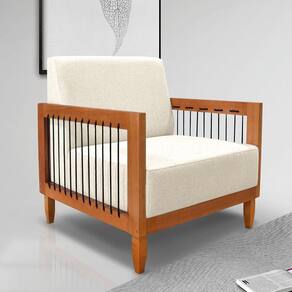 Poltrona Sala De Estar Base De Madeira Mariana Linho S04 - D'rossi Cor Natural