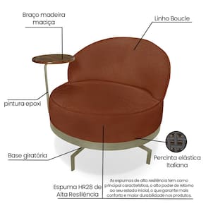 A Poltrona Aura é uma poltrona que combina elegância, conforto e durabilidade. Ela tem um design moderno e sofisticado, com base giratória feita de ferro com pintura epóxi e revestimento em tecido Bouclê Marrom, que harmonizam com qualquer ambiente. Ela é ideal para sala de estar, recepções, sala de jantar ou qualquer outro espaço que você queira decorar com estilo e bom gosto. Ela tem uma base giratória em aço carbono com braço em madeira maciça, que garante a resistência e a sustentabilidade do produto. Ela suporta até 120 kg de peso, podendo ser utilizada por pessoas de diferentes biotipos. Ela tem almofada fixa, assento é preenchido com espuma HR 28 combinada com plumante de silicone, que proporciona flexibilidade e conforto. O encosto é composto por espuma HR 23 e 100% fibra siliconada, proporcionando um apoio suave e aconchegante. A Poltrona Aura é um produto de alta qualidade, beleza e funcionalidade. Ela é fácil de transportar, pois tem um peso leve e um tamanho compacto. A Poltrona Aura é um produto que vai fazer a diferença na sua decoração e no seu bem-estar. Ela vai trazer charme, conforto e durabilidade para o seu ambiente. Aproveite essa oferta e leve para casa uma poltrona de qualidade por um preço incrível. Essa é a sua chance de ter uma poltrona maravilhosa por um preço imperdível. Corra e garanta a sua antes que acabe o estoque!