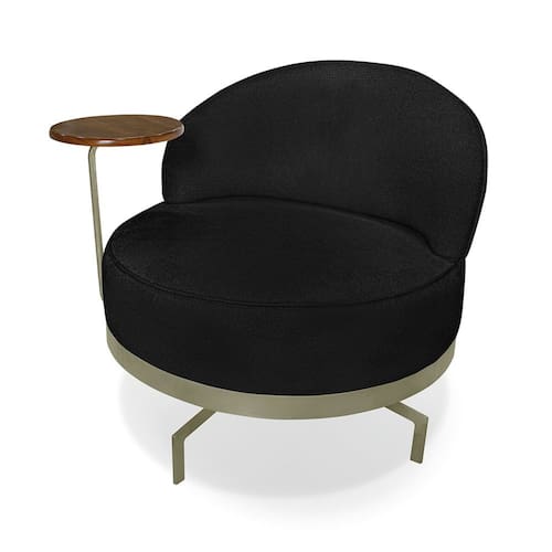 Poltrona Sala de Estar Base Giratória Dourada Aura Bouclê S04 - D`Rossi - Preto