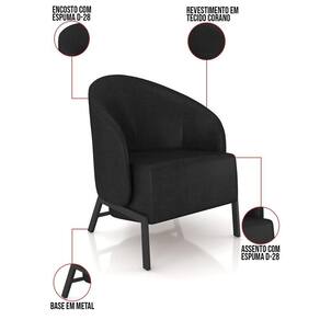Poltrona Luar é uma peça sofisticada e moderna, ideal para compor ambientes contemporâneos. Com uma base industrial em metal preto, a poltrona destaca-se pelo revestimento em tecido Sintético PU Preto, proporcionando uma combinação elegante de conforto e estilo criando uma conexão entre a peça e o ambiente. Ela é ideal para quem busca móveis que não só sejam bonitos, mas que também proporcionem conforto e bem-estar. Pode ser utilizada em sala de estar, salas de espera, recepções, bibliotecas, salas de leitura, espaços externos cobertos, espaços de design e galerias, escritórios, lojas e espaços comerciais, ou qualquer outro espaço que você queira decorar com estilo e bom gosto. Sua estrutura é feita de madeira de reflorestamento protegida (eucalipto), reforçada com cantoneiras e chapas de MDF, que garante a resistência e a sustentabilidade do produto. Ela suporta até 120 kg de peso, podendo ser utilizada por pessoas de diferentes biotipos. No quesito conforto, a poltrona conta com percintas metalúrgicas e manta acrílica, que garantem um excelente suporte e maciez ao sentar. O assento é composto por espuma D28, oferecendo um equilíbrio perfeito entre firmeza e conforto. O encosto, também em espuma D28, e o braço, em espuma D23, complementam a ergonomia do móvel, garantindo uma experiência confortável e acolhedora. Outro detalhe é seu encosto curvilíneo, que enriquece ainda mais o design da Poltrona, conferindo um charme adicional e destacando seu cuidado estético. A Poltrona Luar é um móvel de alta qualidade, que exala sofisticação e conforto. Ela é fácil de transportar, pois tem um peso leve e um tamanho compacto. A Poltrona Luar é um produto que vai fazer a diferença na sua decoração e no seu bem-estar. Ela vai trazer charme, conforto incomparável e durabilidade para o seu ambiente. Aproveite essa e leve para casa uma poltrona de qualidade por um preço incrível. Essa é a sua chance de ter uma poltrona deslumbrante por um preço imperdível. Corra e garanta seu kit 2 Poltronas antes que acabe o estoque!