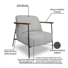 A Poltrona Talim é uma poltrona que combina elegância, conforto e durabilidade. Ela tem um design moderno e sofisticado, com base feita de ferro com pintura epóxi e revestimento em tecido Bouclê Cinza, que harmonizam com qualquer ambiente. Ela é ideal para sala de estar, recepções, mesa de jantar ou qualquer outro espaço que você queira decorar com estilo e bom gosto. Ela tem uma estrutura em aço carbono com braços em madeira maciça, que garante a resistência e a sustentabilidade do produto. Ela suporta até 120 kg de peso, podendo ser utilizada por pessoas de diferentes biotipos. Ela tem assento é preenchido com espuma HR 28 combinada com plumante de silicone, que proporciona flexibilidade e conforto. O encosto é composto por espuma HR 23 e 100% fibra siliconada, proporcionando um apoio suave e aconchegante. A Poltrona Talim é um produto de alta qualidade, beleza e funcionalidade. Ela é fácil de transportar, pois tem um peso leve e um tamanho compacto. A Poltrona Talim é um produto que vai fazer a diferença na sua decoração e no seu bem-estar. Ela vai trazer charme, conforto e durabilidade para o seu ambiente. Aproveite essa oferta e leve para casa uma poltrona de qualidade por um preço incrível. Essa é a sua chance de ter uma poltrona maravilhosa por um preço imperdível. Corra e garanta a sua antes que acabe o estoque!