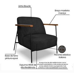A Poltrona Talim é uma poltrona que combina elegância, conforto e durabilidade. Ela tem um design moderno e sofisticado, com base feita de ferro com pintura epóxi e revestimento em tecido Bouclê Preto, que harmonizam com qualquer ambiente. Ela é ideal para sala de estar, recepções, mesa de jantar ou qualquer outro espaço que você queira decorar com estilo e bom gosto. Ela tem uma estrutura em aço carbono com braços em madeira maciça, que garante a resistência e a sustentabilidade do produto. Ela suporta até 120 kg de peso, podendo ser utilizada por pessoas de diferentes biotipos. Ela tem assento é preenchido com espuma HR 28 combinada com plumante de silicone, que proporciona flexibilidade e conforto. O encosto é composto por espuma HR 23 e 100% fibra siliconada, proporcionando um apoio suave e aconchegante. A Poltrona Talim é um produto de alta qualidade, beleza e funcionalidade. Ela é fácil de transportar, pois tem um peso leve e um tamanho compacto. A Poltrona Talim é um produto que vai fazer a diferença na sua decoração e no seu bem-estar. Ela vai trazer charme, conforto e durabilidade para o seu ambiente. Aproveite essa oferta e leve para casa uma poltrona de qualidade por um preço incrível. Essa é a sua chance de ter uma poltrona maravilhosa por um preço imperdível. Corra e garanta a sua antes que acabe o estoque!