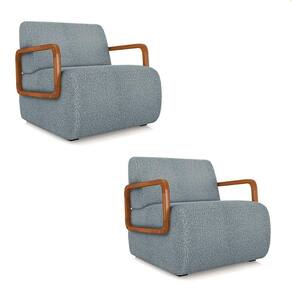 Poltrona Sala De Estar Braço De Madeira Kit 2 Hellen Bouclê K01 - D`rossi Cor Azul