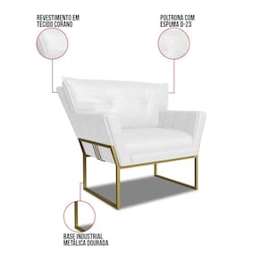 A Poltrona Anitta é uma peça que combina beleza, conforto e funcionalidade. Ela tem um design contemporâneo, sofisticado e um revestimento em tecido Sintético PU Branco que harmonizam com qualquer ambiente. Possui uma base industrial dourada com um belo detalhe trabalhado no metal, que além de adicionar um toque de charme à peça, oferece um suporte sólido e seguro, garantindo conforto superior ao sentar. Ela é ideal para sala de estar, recepções, mesa de jantar ou qualquer outro espaço que você queira decorar com estilo e bom gosto. Ela é produzida cuidadosamente em madeira de reflorestamento eucalipto, que garante a resistência e a sustentabilidade do produto. Ela suporta até 120 kg de peso, podendo ser utilizada por pessoas de diferentes biotipos. Ela tem um acabamento reforçado e espuma de qualidade D23, que oferece maciez e aconchego. A almofada fixa do encosto é revestida com fibra siliconada e conta com um detalhe elegante em botonê, que não só valoriza o design, mas também proporciona uma sensação de conforto inigualável. O encosto levemente triangular da poltrona adiciona uma estética exclusiva, enquanto os braços, com delicados frisos na costura enriquecem ainda mais o produto. A Poltrona Anitta é um produto de alta qualidade, sutileza e versatilidade. Ela é fácil de transportar, pois tem um peso leve e um tamanho compacto. A Poltrona Anitta é um produto que vai fazer a diferença na sua decoração e no seu bem-estar. Ela vai trazer personalidade e inovação para o seu ambiente. Aproveite essa oferta e leve para casa uma poltrona de qualidade por um preço incrível. Essa é a sua chance de ter uma peça atraente na sua decoração por um preço imperdível. Corra e garanta a sua poltrona antes que acabe o estoque!