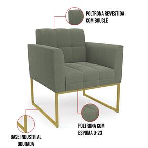 A Poltrona Elisa é uma poltrona que combina elegância, conforto e durabilidade. Ela tem um design retrô e sofisticado, com Base Industrial Dourado e revestimento em tecido Bouclê Menta, que harmonizam com qualquer ambiente. Ela é ideal para sala de estar, recepções, escritórios, cozinhas ou qualquer outro espaço que você queira decorar com estilo e bom gosto. Ela tem uma estrutura em madeira de reflorestamento eucalipto, que garante a resistência e a sustentabilidade do produto. Ela suporta até 120 kg de peso, podendo ser utilizada por pessoas de diferentes biotipos. Ela tem um acabamento reforçado e espuma de qualidade D23, que oferece maciez e aconchego. Ela contém detalhes de costura no encosto e assento, resultando em um acabamento impecável, conferindo muito mais valor e elegância ao produto. A Poltrona Elisa é um móvel de alta qualidade, beleza e funcionalidade. Ela é fácil de transportar, pois tem um peso leve e um tamanho compacto. A Poltrona Elisa é um produto que vai fazer a diferença na sua decoração e no seu bem-estar. Ela vai trazer charme, conforto e durabilidade para o seu ambiente. Aproveite essa oferta e leve para casa uma poltrona de qualidade por um preço incrível. Essa é a sua chance de ter uma poltrona maravilhosa por um preço imperdível. Corra e garanta a sua antes que acabe o estoque!