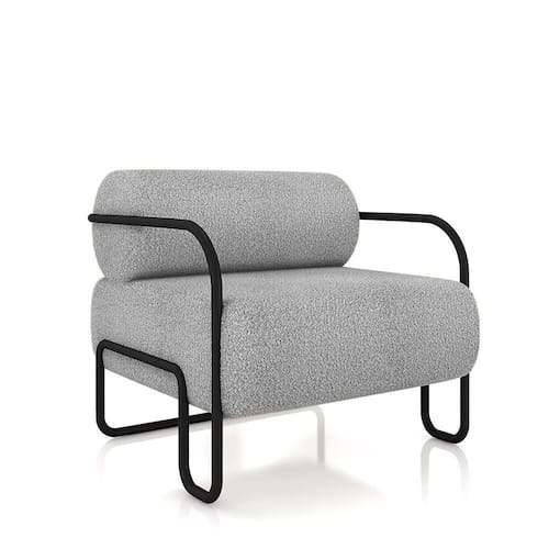 Poltrona Sala De Estar Industrial Preto Ameli Bouclê K01 - D'rossi Cor Cinza Claro