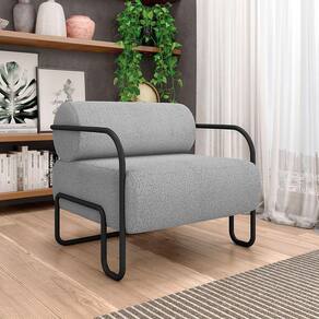 Poltrona Sala de Estar Industrial Preto Ameli Bouclê K01 - D`Rossi - Cinza Claro
