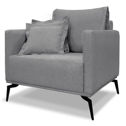 Poltrona Sala De Estar Liv 1 Lugar Pes Aço Linho Cinza Ezz Cinza