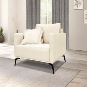 Poltrona Sala De Estar Pé De Ferro Preto Rafaela Linho S04 - D'rossi Cor Perola