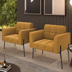 Poltrona Sala de Estar Pé de Ferro Pto Kit 2 Elisa Bouclê D03 - D`Rossi - Mostarda