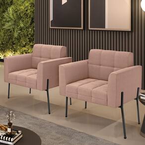 A Poltrona Elisa é uma poltrona que combina elegância, conforto e durabilidade. Ela tem um design retrô e sofisticado, com Pés Laterais de Ferro Preto e revestimento em tecido Bouclê. Ela é ideal para sala de estar, recepções, escritórios, cozinhas ou qualquer outro espaço que você queira decorar com estilo e bom gosto. Ela tem uma estrutura em madeira de reflorestamento eucalipto, que garante a resistência e a sustentabilidade do produto. Ela suporta até 120 kg de peso, podendo ser utilizada por pessoas de diferentes biotipos. Ela tem um acabamento reforçado e espuma de qualidade D23, que oferece maciez e aconchego. Ela contém detalhes de costura no encosto e assento, resultando em um acabamento impecável, conferindo muito mais valor e elegância ao produto. A Poltrona Elisa é um móvel de alta qualidade, beleza e funcionalidade. Ela é fácil de transportar, pois tem um peso leve e um tamanho compacto. A Poltrona Elisa é um produto que vai fazer a diferença na sua decoração e no seu bem-estar. Ela vai trazer charme, conforto e durabilidade para o seu ambiente. Aproveite essa oferta e leve para casa uma poltrona de qualidade por um preço incrível. Essa é a sua chance de ter uma poltrona maravilhosa por um preço imperdível. Corra e garanta seu Kit 2 Poltronas antes que acabe o estoque!