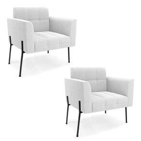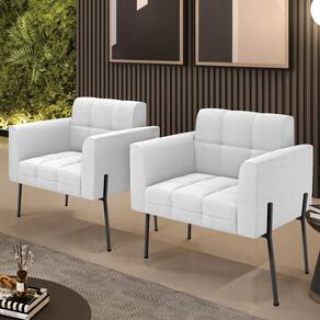A Poltrona Elisa é uma poltrona que combina elegância, conforto e durabilidade. Ela tem um design retrô e sofisticado, com Pés Laterais de Ferro Preto e revestimento em tecido Bouclê Off White, que harmonizam com qualquer ambiente. Ela é ideal para sala de estar, recepções, escritórios, cozinhas ou qualquer outro espaço que você queira decorar com estilo e bom gosto. Ela tem uma estrutura em madeira de reflorestamento eucalipto, que garante a resistência e a sustentabilidade do produto. Ela suporta até 120 kg de peso, podendo ser utilizada por pessoas de diferentes biotipos. Ela tem um acabamento reforçado e espuma de qualidade D23, que oferece maciez e aconchego. Ela contém detalhes de costura no encosto e assento, resultando em um acabamento impecável, conferindo muito mais valor e elegância ao produto. A Poltrona Elisa é um móvel de alta qualidade, beleza e funcionalidade. Ela é fácil de transportar, pois tem um peso leve e um tamanho compacto. A Poltrona Elisa é um produto que vai fazer a diferença na sua decoração e no seu bem-estar. Ela vai trazer charme, conforto e durabilidade para o seu ambiente. Aproveite essa oferta e leve para casa uma poltrona de qualidade por um preço incrível. Essa é a sua chance de ter uma poltrona maravilhosa por um preço imperdível. Corra e garanta seu Kit 2 Poltronas antes que acabe o estoque!