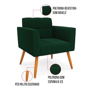 A Poltrona Elisa é uma poltrona que combina elegância, conforto e durabilidade. Ela tem um design retrô e sofisticado, com Pés Palito Castanho e revestimento em tecido Bouclê Verde, que harmonizam com qualquer ambiente. Ela é ideal para sala de estar, recepções, escritórios, cozinhas ou qualquer outro espaço que você queira decorar com estilo e bom gosto. Ela tem uma estrutura em madeira de reflorestamento eucalipto, que garante a resistência e a sustentabilidade do produto. Ela suporta até 120 kg de peso, podendo ser utilizada por pessoas de diferentes biotipos. Ela tem um acabamento reforçado e espuma de qualidade D23, que oferece maciez e aconchego. Ela contém detalhes de costura no encosto e assento, resultando em um acabamento impecável, conferindo muito mais valor e elegância ao produto. A Poltrona Elisa é um móvel de alta qualidade, beleza e funcionalidade. Ela é fácil de transportar, pois tem um peso leve e um tamanho compacto. A Poltrona Elisa é um produto que vai fazer a diferença na sua decoração e no seu bem-estar. Ela vai trazer charme, conforto e durabilidade para o seu ambiente. Aproveite essa oferta e leve para casa uma poltrona de qualidade por um preço incrível. Essa é a sua chance de ter uma poltrona maravilhosa por um preço imperdível. Corra e garanta a sua antes que acabe o estoque!