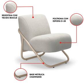 A Poltrona Martina em Bouclê é a combinação ideal entre design sofisticado, conforto e resistência. Produzida com estrutura em madeira de reflorestamento tratada (eucalipto) e reforços em MDF, oferece estabilidade e longa durabilidade. Sua base fixa em metal na cor champanhe acrescenta um toque industrial elegante, harmonizando com o formato curvado que garante um visual moderno e cheio de personalidade. O assento espaçoso, confeccionado em espuma D-33, proporciona firmeza e aconchego, enquanto o encosto em espuma D-28 entrega o apoio ideal para momentos de relaxamento. Ambos contam com percintas elásticas, que aumentam a resistência e elevam a sensação de conforto ao uso. Sem braços, ela apresenta dimensões compactas, o que a torna ideal para diferentes ambientes, maximizando os espaços e mantendo a sofisticação. Seja na sala de estar, escritório, recepção ou até em ambientes comerciais, sua presença valoriza a decoração e agrega estilo. Com acabamento macio ao toque e simples de cuidar, o revestimento agrega praticidade e elegância, tornando a poltrona uma opção versátil e sofisticada para qualquer local.