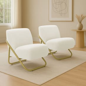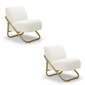 Poltrona Sala Estar Industrial Dourado Kit 2 Martina Bouclê K01 - D`Rossi - Off White