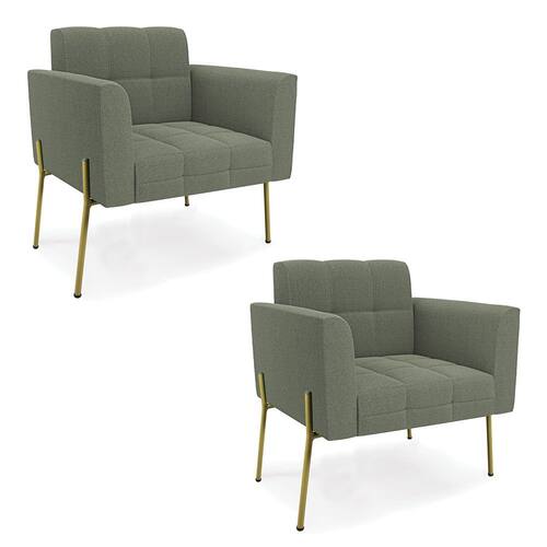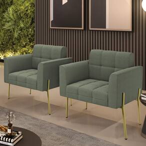 A Poltrona Elisa é uma poltrona que combina elegância, conforto e durabilidade. Ela tem um design retrô e sofisticado, com Pés Laterais de Ferro Dourado e revestimento em tecido Bouclê. Ela é ideal para sala de estar, recepções, escritórios, cozinhas ou qualquer outro espaço que você queira decorar com estilo e bom gosto. Ela tem uma estrutura em madeira de reflorestamento eucalipto, que garante a resistência e a sustentabilidade do produto. Ela suporta até 120 kg de peso, podendo ser utilizada por pessoas de diferentes biotipos. Ela tem um acabamento reforçado e espuma de qualidade D23, que oferece maciez e aconchego. Ela contém detalhes de costura no encosto e assento, resultando em um acabamento impecável, conferindo muito mais valor e elegância ao produto. A Poltrona Elisa é um móvel de alta qualidade, beleza e funcionalidade. Ela é fácil de transportar, pois tem um peso leve e um tamanho compacto. A Poltrona Elisa é um produto que vai fazer a diferença na sua decoração e no seu bem-estar. Ela vai trazer charme, conforto e durabilidade para o seu ambiente. Aproveite essa oferta e leve para casa uma poltrona de qualidade por um preço incrível. Essa é a sua chance de ter uma poltrona maravilhosa por um preço imperdível. Corra e garanta seu Kit 2 Poltronas antes que acabe o estoque!