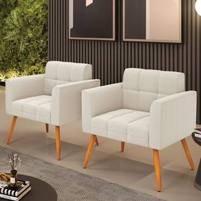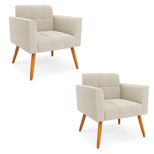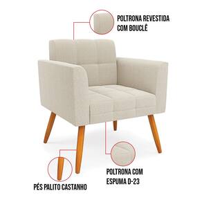 A Poltrona Elisa é uma poltrona que combina elegância, conforto e durabilidade. Ela tem um design retrô e sofisticado, com Pés Palito Castanho e revestimento em tecido Bouclê Bege, que harmonizam com qualquer ambiente. Ela é ideal para sala de estar, recepções, escritórios, cozinhas ou qualquer outro espaço que você queira decorar com estilo e bom gosto. Ela tem uma estrutura em madeira de reflorestamento eucalipto, que garante a resistência e a sustentabilidade do produto. Ela suporta até 120 kg de peso, podendo ser utilizada por pessoas de diferentes biotipos. Ela tem um acabamento reforçado e espuma de qualidade D23, que oferece maciez e aconchego. Ela contém detalhes de costura no encosto e assento, resultando em um acabamento impecável, conferindo muito mais valor e elegância ao produto. A Poltrona Elisa é um móvel de alta qualidade, beleza e funcionalidade. Ela é fácil de transportar, pois tem um peso leve e um tamanho compacto. A Poltrona Elisa é um produto que vai fazer a diferença na sua decoração e no seu bem-estar. Ela vai trazer charme, conforto e durabilidade para o seu ambiente. Aproveite essa oferta e leve para casa uma poltrona de qualidade por um preço incrível. Essa é a sua chance de ter uma poltrona maravilhosa por um preço imperdível. Corra e garanta seu Kit 2 Poltronas antes que acabe o estoque!