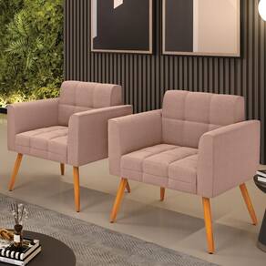 A Poltrona Elisa é uma poltrona que combina elegância, conforto e durabilidade. Ela tem um design retrô e sofisticado, com Pés Palito Castanho e revestimento em tecido Bouclê Rosê, que harmonizam com qualquer ambiente. Ela é ideal para sala de estar, recepções, escritórios, cozinhas ou qualquer outro espaço que você queira decorar com estilo e bom gosto. Ela tem uma estrutura em madeira de reflorestamento eucalipto, que garante a resistência e a sustentabilidade do produto. Ela suporta até 120 kg de peso, podendo ser utilizada por pessoas de diferentes biotipos. Ela tem um acabamento reforçado e espuma de qualidade D23, que oferece maciez e aconchego. Ela contém detalhes de costura no encosto e assento, resultando em um acabamento impecável, conferindo muito mais valor e elegância ao produto. A Poltrona Elisa é um móvel de alta qualidade, beleza e funcionalidade. Ela é fácil de transportar, pois tem um peso leve e um tamanho compacto. A Poltrona Elisa é um produto que vai fazer a diferença na sua decoração e no seu bem-estar. Ela vai trazer charme, conforto e durabilidade para o seu ambiente. Aproveite essa oferta e leve para casa uma poltrona de qualidade por um preço incrível. Essa é a sua chance de ter uma poltrona maravilhosa por um preço imperdível. Corra e garanta seu Kit 2 Poltronas antes que acabe o estoque!