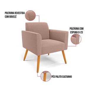 A Poltrona Marisa é a escolha perfeita para quem deseja unir conforto e comodidade em um estilo elegante. Com um design único, ela possui Pés Palito Castanho que harmoniza com o seu belíssimo tom, criando uma combinação elegante de conforto e estilo. Ela é perfeita para quem busca móveis que não só sejam bonitos, mas que também proporcionem bem-estar. Ideal para compor salas de estar, recepções, bibliotecas, salas de leitura, espaços de design e até áreas comerciais, essa peça versátil é pensada para ambientes que excluam beleza e aconchego. Sua estrutura, em madeira de reflorestamento de eucalipto, oferece resistência e sustentabilidade, suportando até 120 kg, garantindo segurança para usuários de diferentes biotipos. O conforto é outro destaque, com estofado em espuma prorelax D-23, que proporciona suporte e maciez ideais. Revestida em Bouclê, um tecido maleável e sofisticado, a Poltrona Marisa segue a tendência do momento com um toque suave e quente, remetendo à textura natural da lã. Leve e fácil de transportar, a Poltrona Marisa é um item que agrega charme e durabilidade ao seu espaço. Não perca a oportunidade de adquirir essa peça exclusiva que fará toda a diferença na sua decoração e no seu bem-estar. Aproveite agora!
